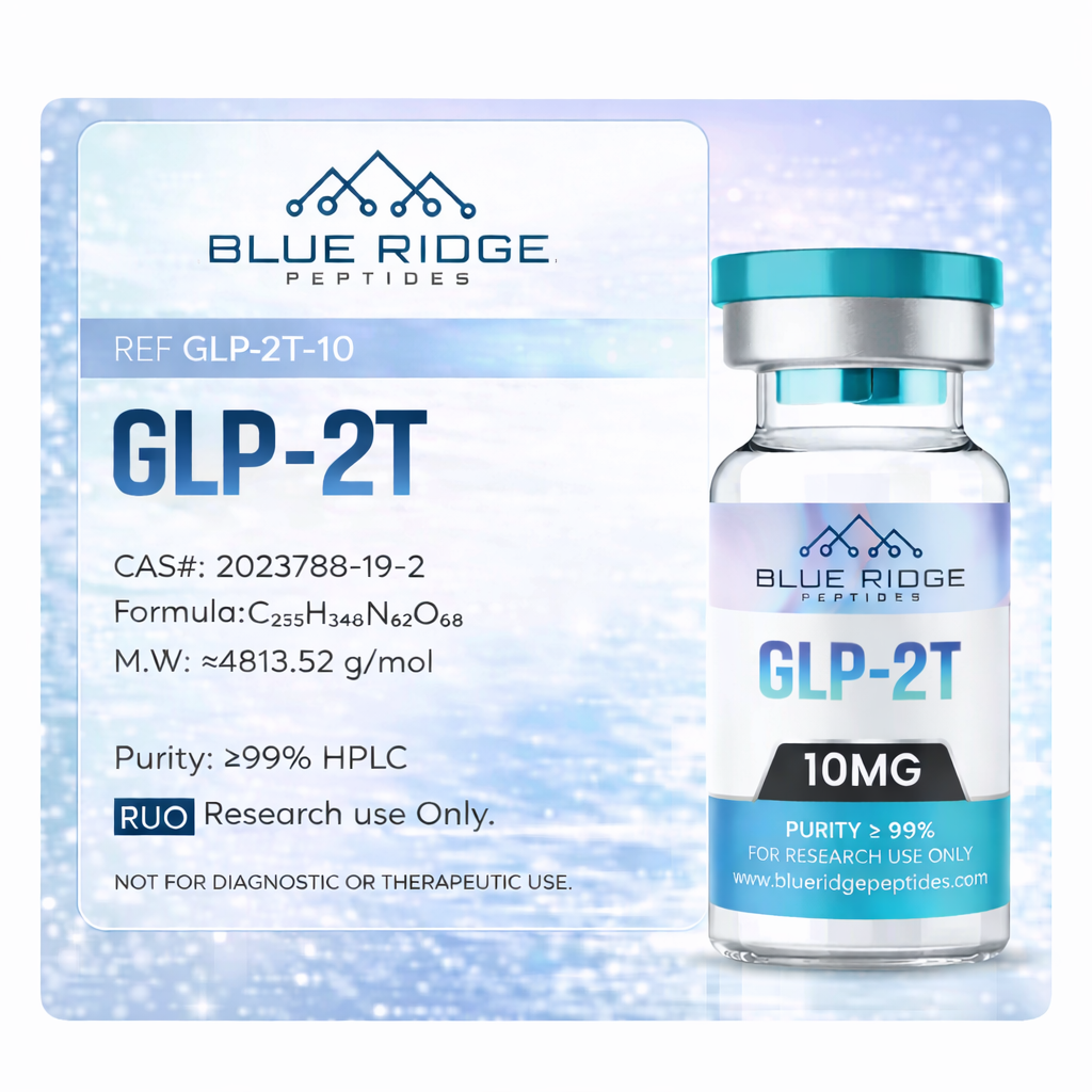 GLP-2T supplied by Blue Ridge Peptides is intended exclusively for laboratory research, analytical testing, and in-vitro scientific investigation. This product is not intended for human or animal use and is not approved for therapeutic or diagnostic applications.