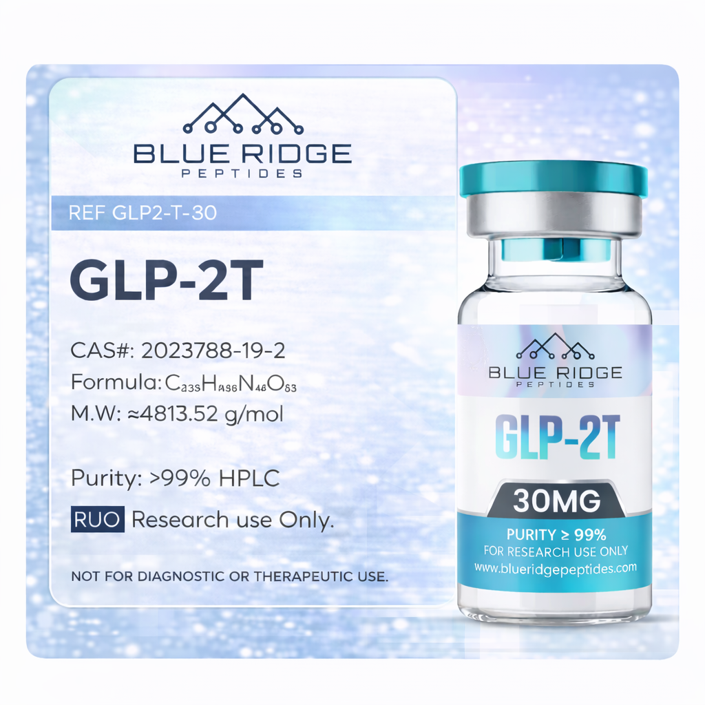 GLP-2T supplied by Blue Ridge Peptides is intended exclusively for laboratory research, analytical testing, and in-vitro scientific investigation. This product is not intended for human or animal use and is not approved for therapeutic or diagnostic applications.