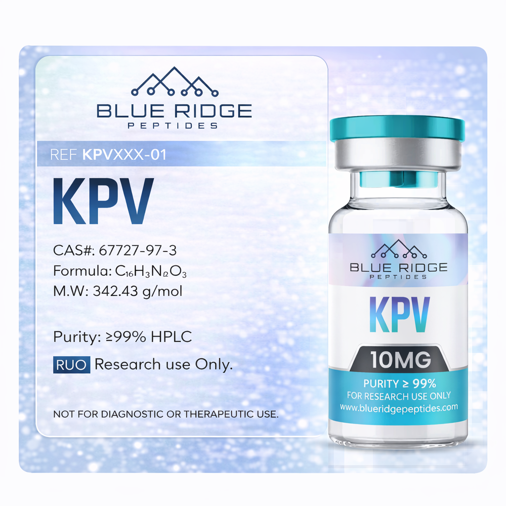 KPV supplied by Blue Ridge Peptides is intended exclusively for laboratory research, analytical testing, and in-vitro scientific investigation. This product is not intended for human or animal use and is not approved for therapeutic or diagnostic applications.