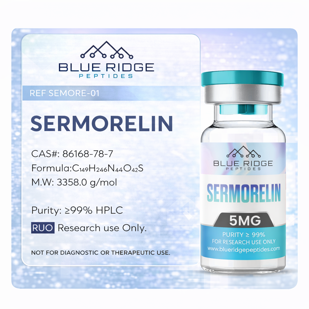 Blue Ridge Peptides supplies Sermorelin strictly for laboratory research, analytical testing, and in-vitro scientific investigation. This material is not intended for human or animal use and is not approved for therapeutic or diagnostic applications.
